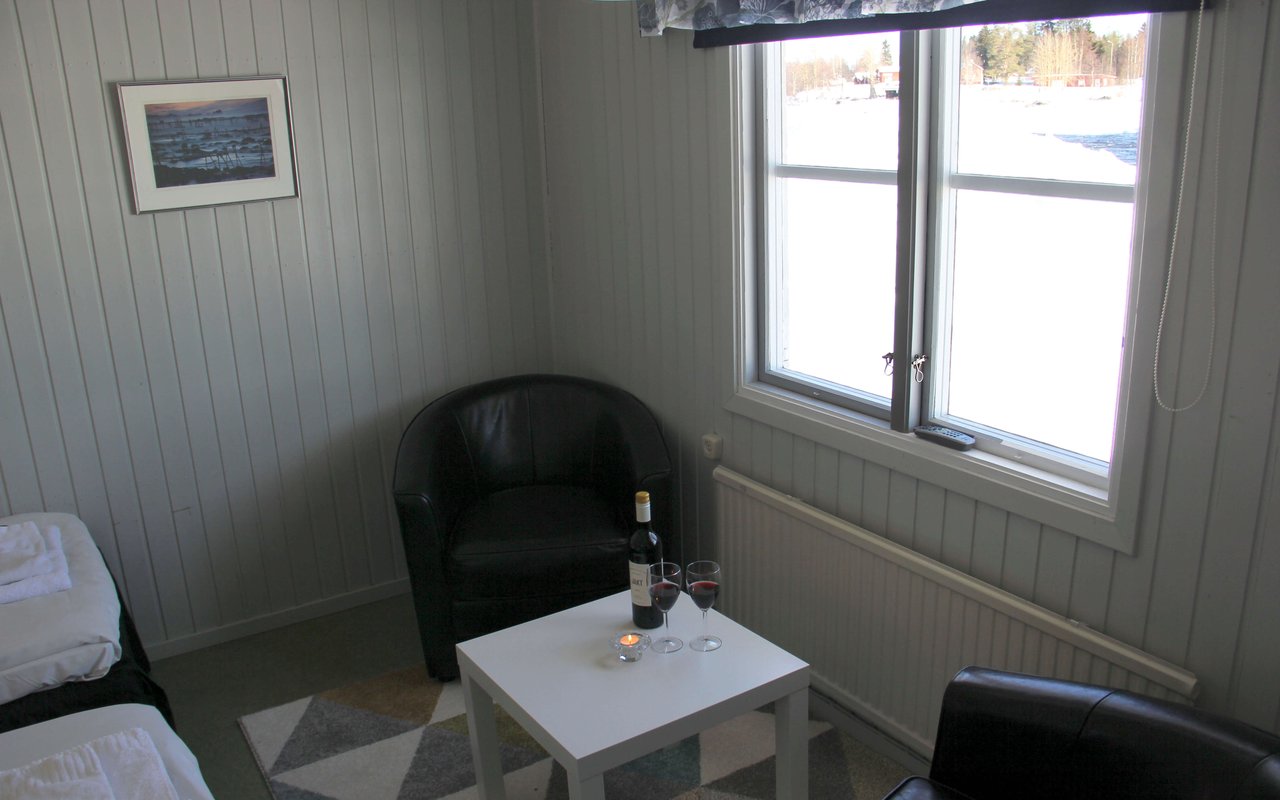 Dessa stugor består av ett allrum med två bäddar och trinett-kök, kylskåp, telefon samt toalett med dusch. Stugorna har ett fint läge nära den brusande forsen. Dessa stugor är normalt stängda på vintern, då kan det förekomma att boende blir i stuglägenhet istället.